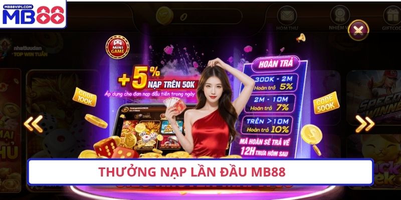 Thưởng nạp lần đầu MB88 là bước đệm hoàn hảo để người mới tự tin khám phá thế giới giải trí trực tuyến đầy màu sắc. Với hàng loạt gói ưu đãi linh hoạt, mức thưởng cao và điều kiện đơn giản, đây chắc chắn là cơ hội không nên bỏ lỡ cho bất kỳ ai muốn khởi đầu thật “đậm đà”. Đừng chần chừ – truy cập ngay MB88 để tận hưởng ưu đãi đặc quyền và bắt đầu hành trình khởi sắc hôm nay!